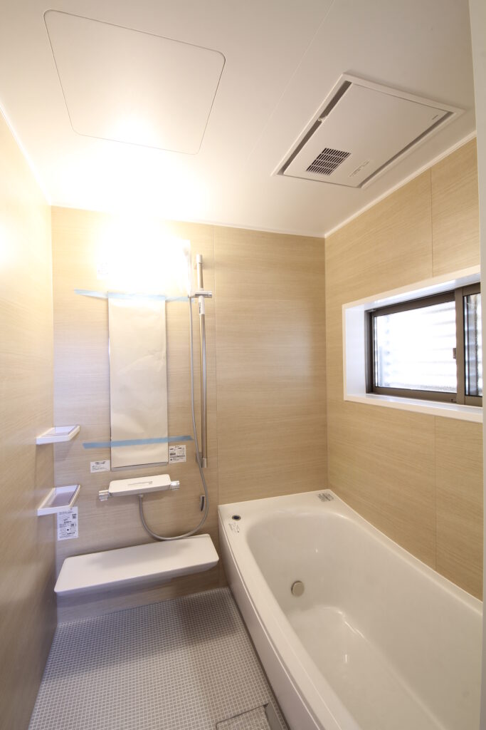 お客様が選んだユニットバスです。ベージュ系の優しい色合いが素敵。