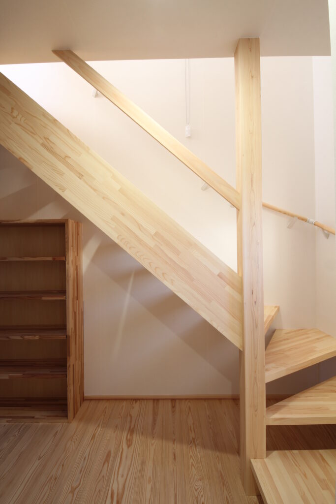 お客様のご希望によりキッチンは土間仕上げにさせていただきました。とはいえ玄関の土間とは分けてあるのでスリッパでも裸足でもOKなエリアです。子育て世代のご家族ですし、キッチン周りはどうしても汚れてしまいがち。そんな時に床が土間仕上げであれば気にせずお掃除できる良さもあります。