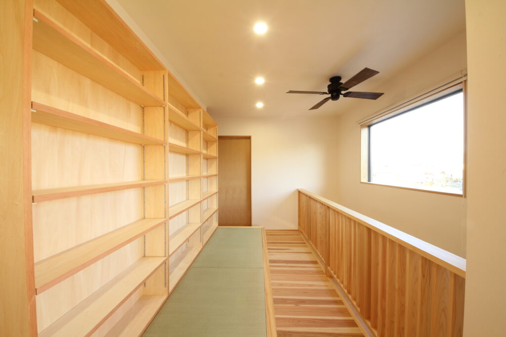 2階は個室だけ。そんな考え方をなくし、通路という生活に必要な場所を他の用途としても活用する設計は注文住宅ならではの発想力だと思います。
