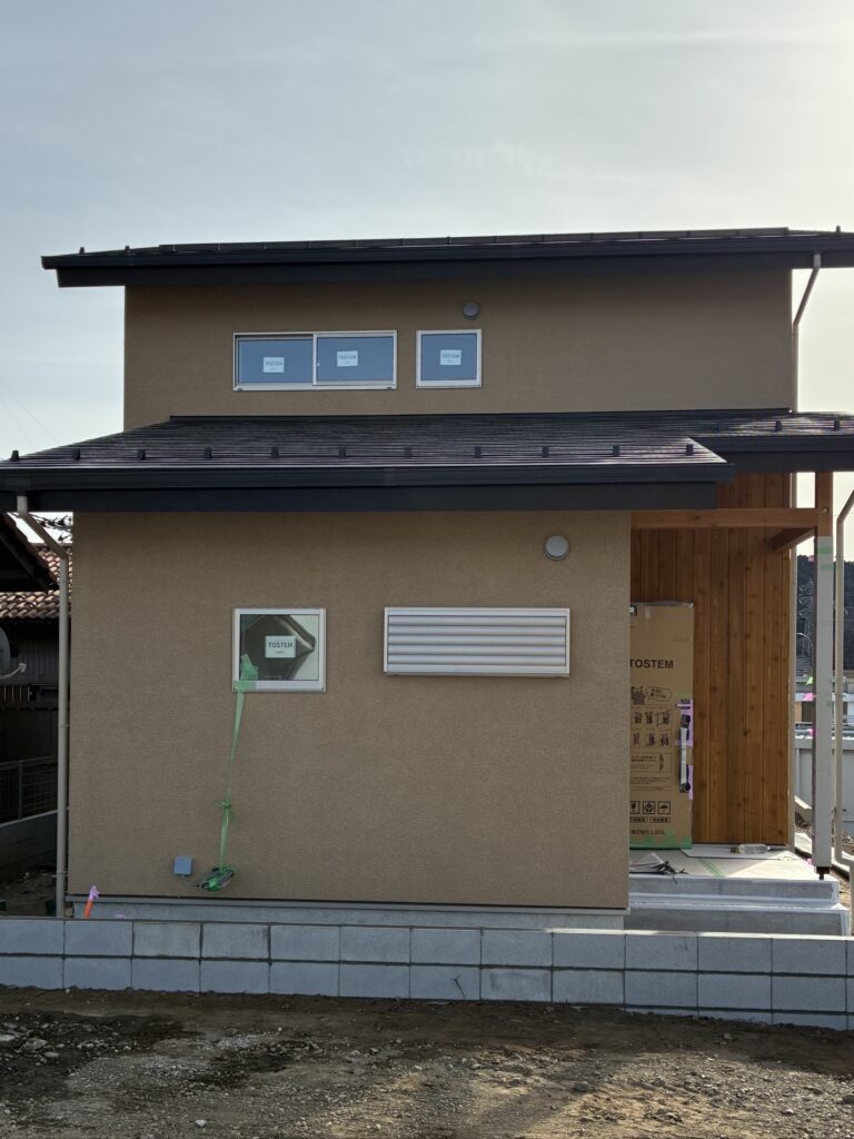 優しい印象の外観がやっと見えました。工事もいよいよ大詰めです。