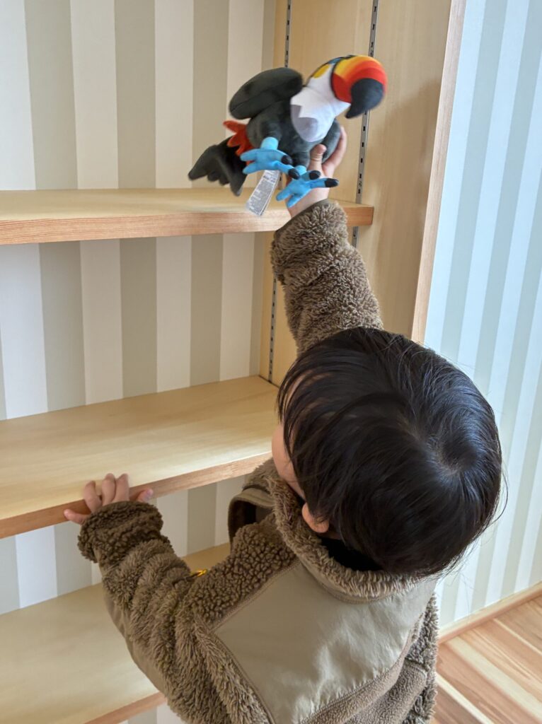このぬいぐるみは、自分の部屋に一番に飾ってくれました。「ここに置いて〜♪守ってくれるんだよぉ♪」と♡ 可愛さ全開です!!!